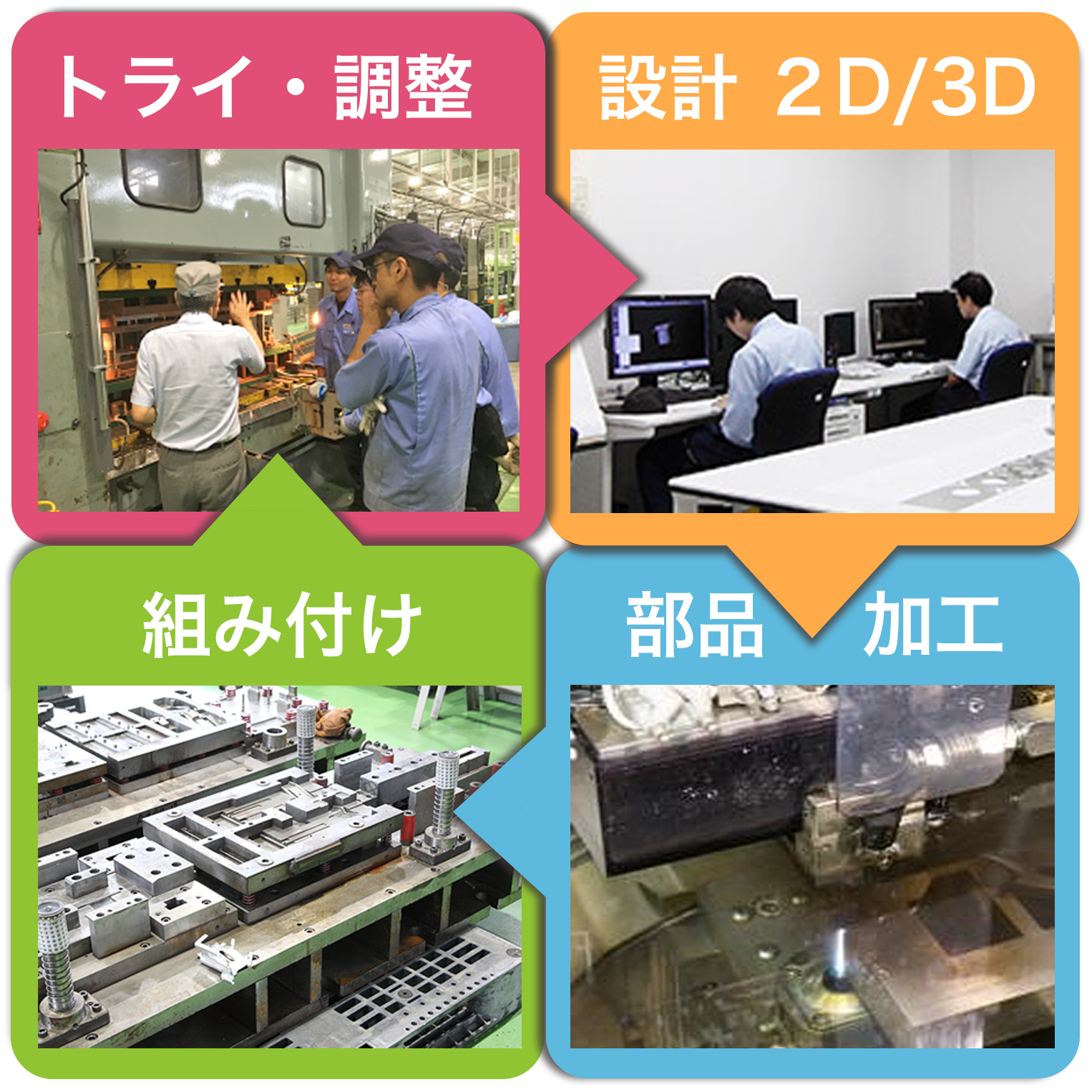 社内での一貫した生産体制のもと、各工程での不具合を速やかにフィードバックし、品質と生産性を折り込み、トータルでのコスト低減に寄与いたします。
